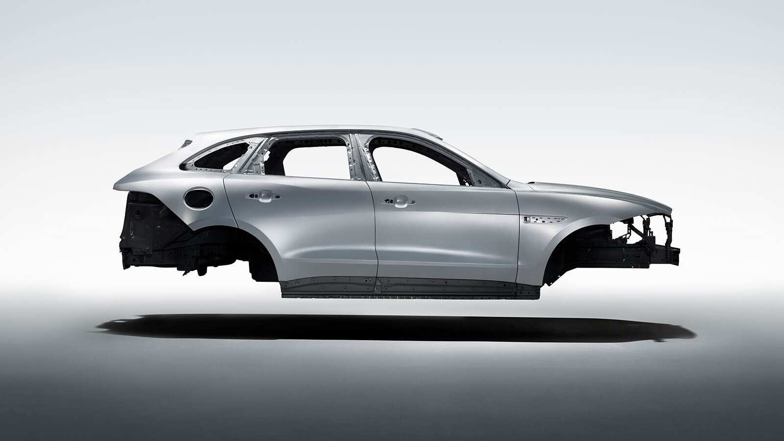 Siamo ormai esperti nell'uso dell'alluminio da impiegare nella produzione. I fogli di alluminio non lavorato, dello spessore di appena 0,9 mm per i pannelli esterni o fino a 3 mm nei punti in cui è richiesta maggiore robustezza, vengono stampati in forme complesse che conferiscono resistenza e, utilizzando una forza fino a 2.000 tonnellate, punzonati con precisione millimetrica. I risultati sono straordinari. Il pannello laterale di F‑PACE è uno dei più grandi che produciamo, ma nonostante questo ha un peso di soli 5,8 kg.